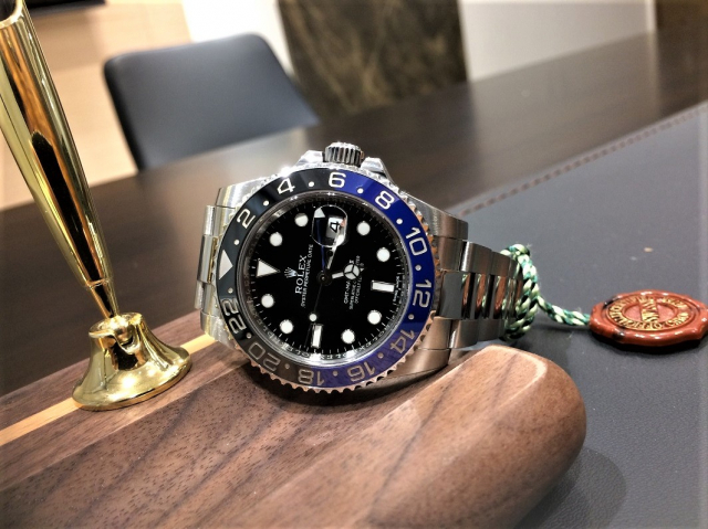 ↑ GMT-MASTER II 116719BLRO腕錶,18K白金搭配紅藍雙色陶瓷外圈,全新售價NT$1,269,500