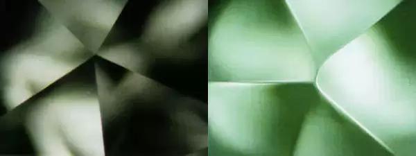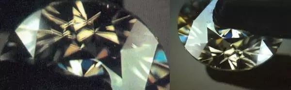 ↑ 左:鑽石刻面稜線銳利筆直 右:仿製品刻面棱圓滑
